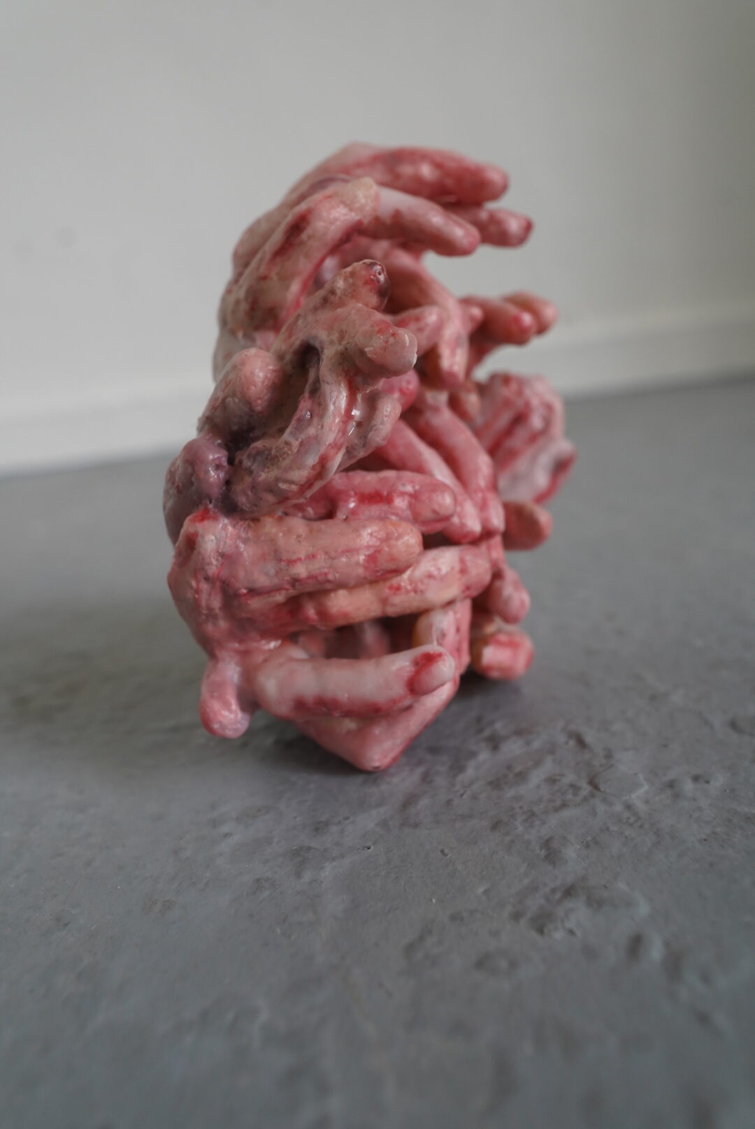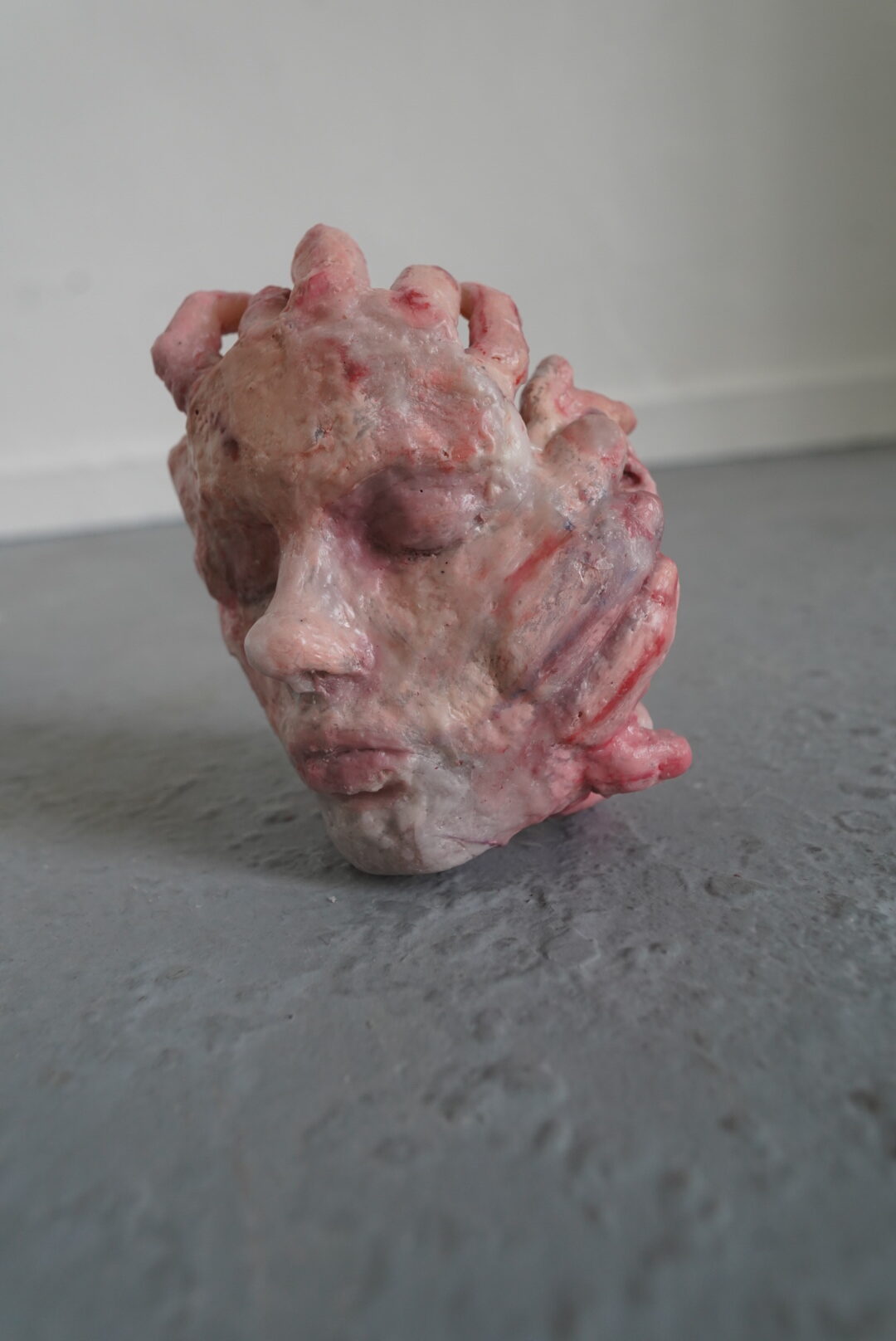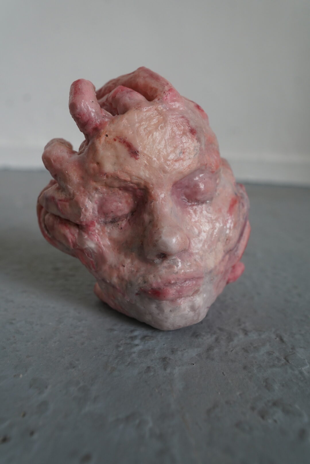 Often, these processes happen unconsciously, and at first you do not fully understand what you are actually feeling. The face in this work is therefore very relaxed, almost as if sleeping or sleepwalking, while the back of the head is using all its strength to search through the person and break through boundaries.